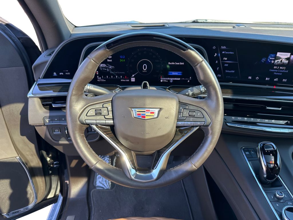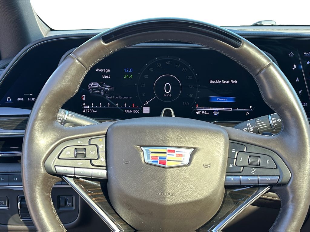 Keep your hands warm all winter with a heated steering wheel in this vehicle . Good News! This certified CARFAX 1-owner vehicle has only had one owner before you. This Cadillac Escalade offers Apple CarPlay for seamless connectivity. The Cadillac Escalade has auto-adjust speed for safe following. The leather seats are soft and supportive on this 2023 Cadillac Escalade . This Cadillac Escalade stays safely in its lane with Lane Keep Assist. The Cadillac Escalade features a hands-free Bluetooth phone system. This model offers Android Auto for seamless smartphone integration. The installed navigation system will keep you on the right path. This 1/2 ton suv's Lane Departure Warning keeps you safe by alerting you when you drift from your lane. Our dealership has already run the CARFAX report and it is clean. A clean CARFAX is a great asset for resale value in the future. Protect this Cadillac Escalade from unwanted accidents with a cutting edge backup camera system.