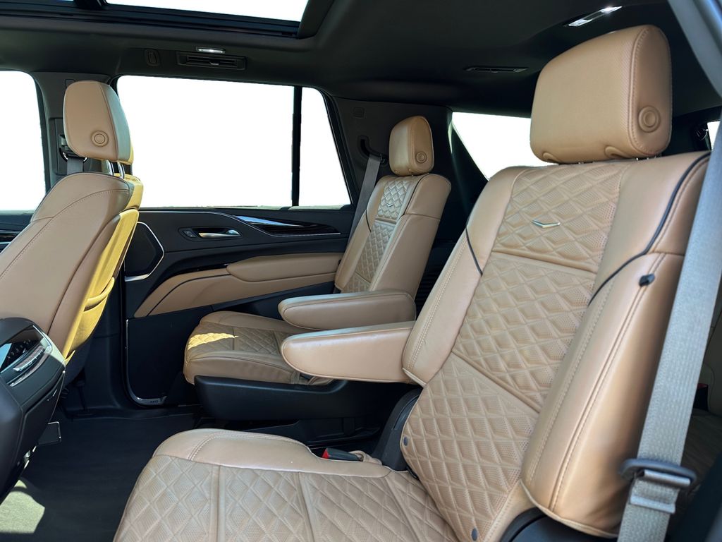 Touring Package: Soft Closing Front and Rear Doors; Illuminating Front and Rear Sill Plates; Air Ride Adaptive Suspension. Preferred Equipment Group 1SC: Trailer Side Blind Zone Alert; Power Panoramic Tilt-Sliding Sunroof; Enhanced Automatic Parking Assist; Smart Trailer Integration Indicator; Rear Camera Mirror Washer; Rear Camera Mirror; Theft-Deterrent Alarm System; Vehicle Interior Movement Sensor; Rear Cross Traffic Alert; Vehicle Inclination Sensor; Reverse Automatic Braking; Glass Breakage Sensor; Adaptive Cruise Control; Automatic Seat Belt Tightening; Body-Color Door Handles; Door Lock and Latch Shields; Electronic Limited-Slip Differential; 22 12-Spoke Polished Alloy Wheels; Integrated Trailer Brake Controller; Hitch Guidance with Hitch View; Single-Speed Active Transfer Case; Running Board Assist Steps; Heated and Ventilated Driver and Front Passenger Seats; Reconfigurable Full-Color Head-Up Display; AKG Studio 19-Speaker Audio System; Magnetic Ride Control Suspension; Enhanced Automatic Emergency Braking. Super Cruise. Full Leather Seats with Faceted Quilting. Power-Retractable Assist Steps. 3 Years of OnStar & Connected Services Plan. Dark Moon Blue Metallic. Puddle Lamps with Cadillac Crest. **Equipment listed is based on original vehicle build and subject to change. Please confirm the accuracy of the included equipment by calling the dealer prior to purchase.**