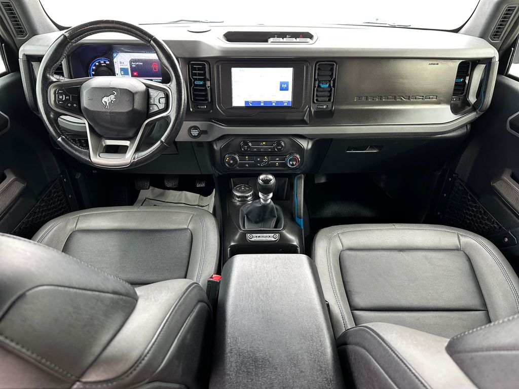 The Ford Bronco features a hands-free Bluetooth phone system. Apple CarPlay: Seamless smartphone integration for this model - stay connected and entertained on the go! This 1/2 ton suv comes equipped with Android Auto for seamless smartphone integration on the road. Never get into a cold vehicle again with the remote start feature on the Ford Bronco. Our dealership has already run the CARFAX report and it is clean. A clean CARFAX is a great asset for resale value in the future. Protect it from unwanted accidents with a cutting edge backup camera system. It has a 4 Cyl, 2.3L high output engine. This model gleams with an elegant silver clear coated finish. This 1/2 ton suv has four wheel drive capabilities. The Electronic Stability Control will keep you on your intended path. This 2021 Ford Bronco features cruise control for long trips. This model is equipped with a gasoline engine.