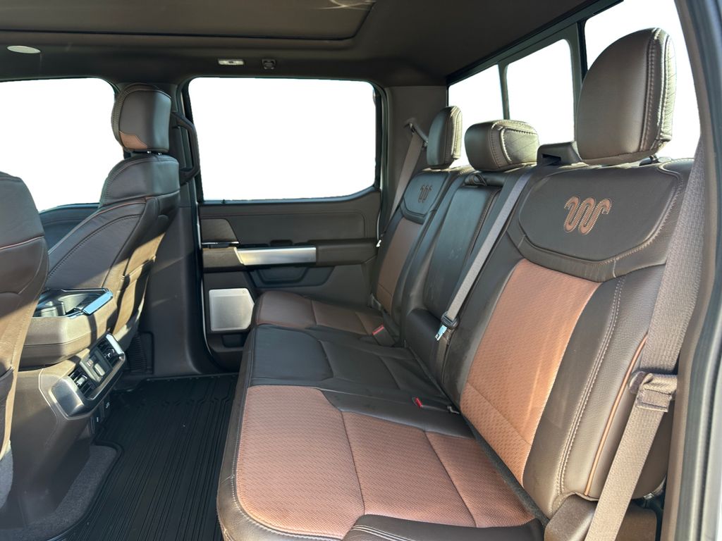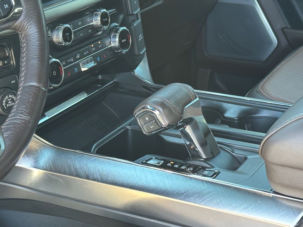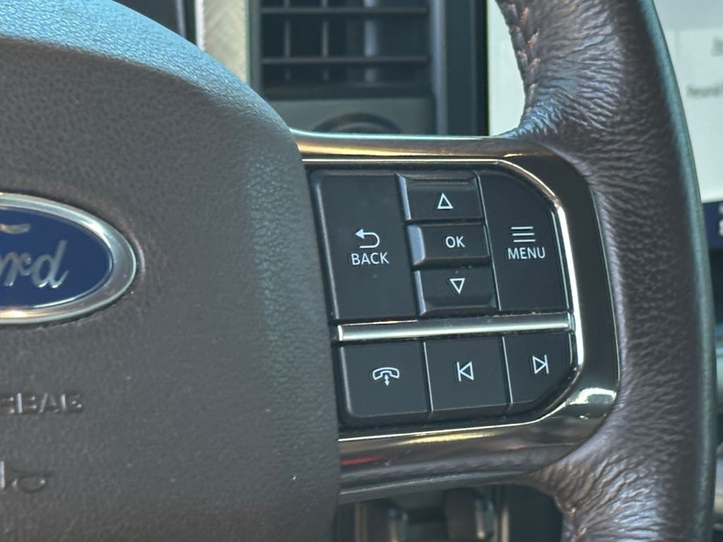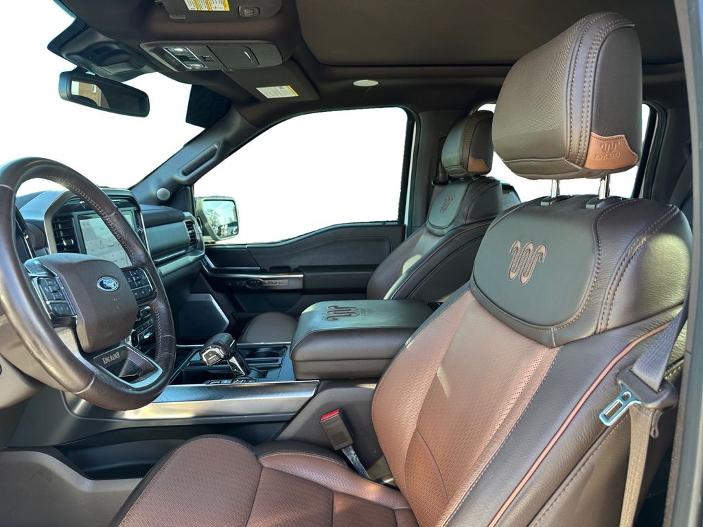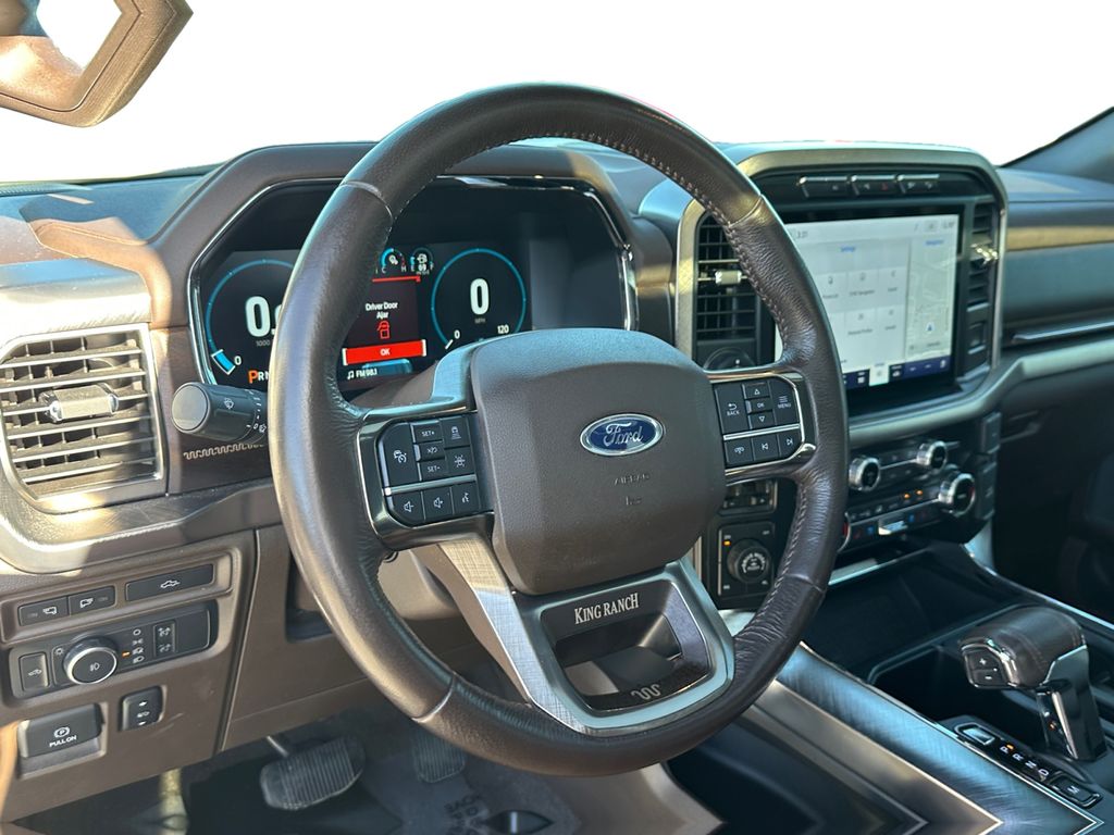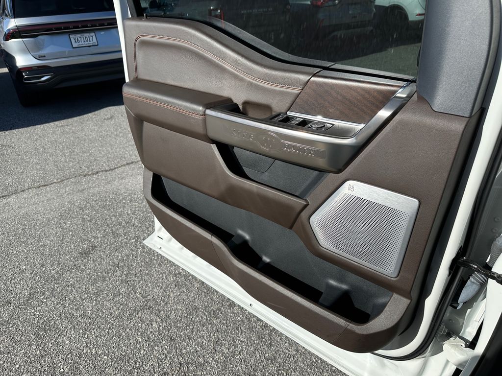 King Ranch Chrome Appearance Package: Chrome Door Handles with Body-Color Strap; Front and Rear Chrome Bumpers; Bright Belt Moldings; 275/60R20 OWL A/T Tires; 20 Chrome-Like PVD Wheels; Chrome Skull Caps on Exterior Mirrors. Max Trailer Tow Package: Electronic Locking with 3.73 Axle Ratio; Integrated Trailer Brake Controller; Class IV Trailer Hitch Receiver; Extended Range 36 Gallon Fuel Tank; Pro Trailer Backup Assist. FX4 Off-Road Package: Off-Road Tuned Front Shock Absorbers; Skid Plates; Monotube Rear Shocks; Rock Crawl Mode; 4x4 FX4 Off-Road Bodyside Decal; Hill Descent Control; Tray Style Floor Liner. Equipment Group 601A High: 5.0L V8 Engine; B&O Unleashed Sound System by Bang & Olufsen Radio; Electronic 10-Speed Automatic Transmission; 275/60R20 OWL A/T Tires; Power-Deployable Running Boards; 7. 050 lbs Payload Package GVWR; King Ranch Leather Bucket Seats; Multi-Contour Driver and Passenger Seats. Bed Utility Package: BoxLink; LED Box Lighting; Tailgate Step with Tailgate Work Surface; Power Tailgate. Twin Panel Moonroof. Adaptive Steering. Star White Metallic TC. Star White Metallic TC. Electronic Locking with 3.73 Axle Ratio. Extended Range 36 Gallon Fuel Tank. Tray Style Floor Liner. Skid Plates. BoxLink. **Equipment listed is based on original vehicle build and subject to change. Please confirm the accuracy of the included equipment by calling the dealer prior to purchase.**