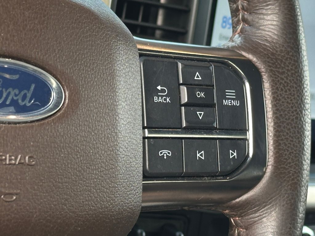 Ford Co-Pilot360 Active 2.0: BlueCruise; Active Park Assist 2.0. Equipment Group 601A High: 5.0L V8 Engine; B&O Unleashed Sound System by Bang & Olufsen Radio; Electronic 10-Speed Automatic Transmission; 275/60R20 OWL A/T Tires; Power-Deployable Running Boards; 20 Machined-Aluminum Wheels; 7. 050 lbs Payload Package GVWR; King Ranch Leather Bucket Seats; 3.31 Axle Ratio; Multi-Contour Driver and Passenger Seats. Trailer Tow Package: Integrated Trailer Brake Controller; Class IV Trailer Hitch Receiver; Pro Trailer Backup Assist. Bed Utility Package: BoxLink; LED Box Lighting; Tailgate Step with Tailgate Work Surface; Power Tailgate. Twin Panel Moonroof. 20 Machined-Aluminum Wheels. Star White Metallic TC. Star White Metallic TC. 360 Degree Camera. Interior Work Surface. BoxLink. **Equipment listed is based on original vehicle build and subject to change. Please confirm the accuracy of the included equipment by calling the dealer prior to purchase.**