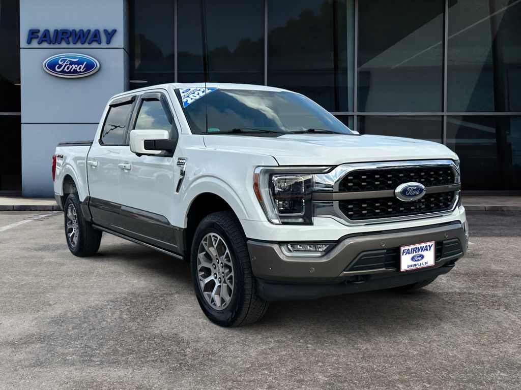 2022 Ford F-150 King Ranch â" 4WD, V8 5.0L, 30,685 miles â" Greenville, SC. This rugged luxury pickup blends premium comfort with legendary capability, and it's priced to move. Powered by a proven 5.0L V8 that runs on Gasoline/E85 and paired with four-wheel drive, this Ford F-150 King Ranch delivers confident towing, strong acceleration, and dependable performance in every season. Inside, the King Ranch package offers upscale materials and thoughtful tech: Back-Up Camera for safer maneuvering, Heated Steering Wheel for cold mornings, Remote Start for instant cabin comfort, and Adaptive Cruise Control for relaxed highway driving. Premium Wheels enhance both style and road presence, completing a package built to impress. With only 30,685 miles, this truck is lightly pre-owned and ready for work or weekend adventures. The combination of the V8 powerplant, 4WD capability, and King Ranch luxury finishes makes it ideal for buyers who want versatility without compromise. Located in Greenville, SC, this Ford F-150 King Ranch is being offered at the best priceâ"an exceptional value compared with similar trucks in the area. Act now to secure a powerful, comfortable, and feature-rich Ford F-150 King Ranch with low miles and premium equipment. Contact us in Greenville, SC to schedule a test drive and see why this is the best-priced King Ranch available.