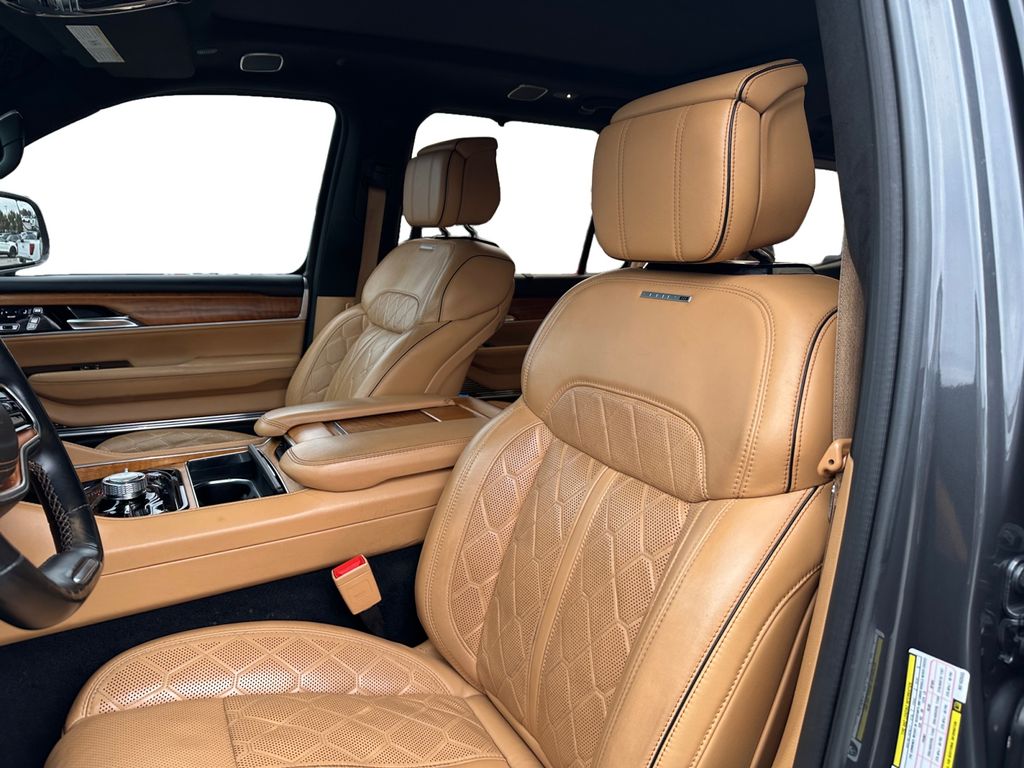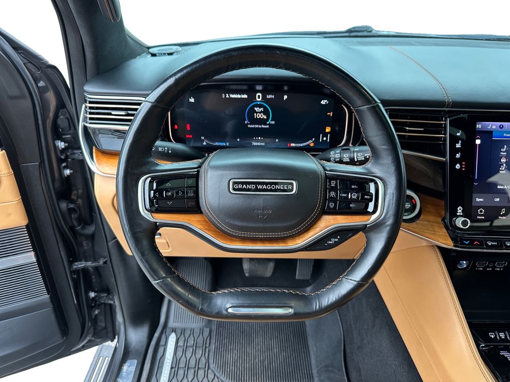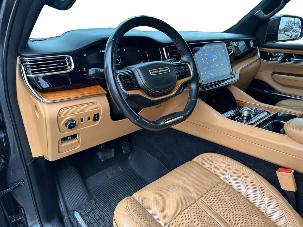 Bluetooth technology is built into this vehicle, keeping your hands on the steering wheel and your focus on the road. Apple CarPlay: Seamless smartphone integration for the vehicle - stay connected and entertained on the go! The vehicle has automated speed control that adjusts to maintain a safe following distance, enhancing highway driving convenience. The sunroof in this model is a great way to control temperature and let the outside in. This model is pure luxury with a heated steering wheel. with XM/Sirus Satellite Radio you are no longer restricted by poor quality local radio stations while driving this unit. Anywhere on the planet, you will have hundreds of digital stations to choose from. This Jeep Grand Wagoneer comes equipped with Android Auto for seamless smartphone integration on the road. The installed navigation system will keep you on the right path. Start this model from inside with remote start. The premium wheels make this 1/2 ton suv stand out from the crowd.