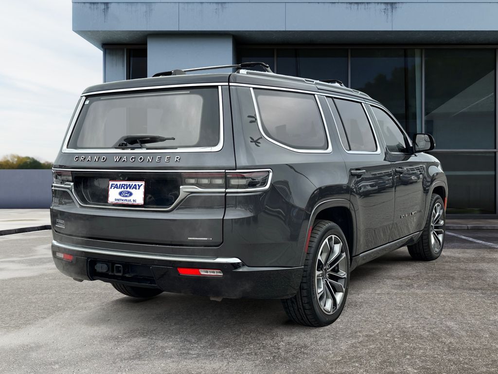 Experience premium capability and refined luxury with this 2022 Jeep Grand Wagoneer Series III 4WD, now available in Greenville, SC. Powered by a robust 6.4L V8 gasoline engine, this Jeep Grand Wagoneer delivers confident towing and smooth highway performance while wrapped in a sophisticated, driver-focused interior. The Series III trim enhances every journey with advanced technology and comfort features designed for long drives and daily use. Equipped with factory navigation, reach your destination with clear routing and real-time updates. Stay connected seamlessly with Android Auto integration and enjoy a rich audio experience via XM Radio. Cold mornings are no problem thanks to the heated steering wheel and driver-focused amenities, while remote start ensures cabin comfort before you step inside. Four-wheel drive capability provides traction and control in varied weather and road conditions, making this SUV versatile for city streets and weekend getaways. This Jeep Grand Wagoneer has been carefully inspected and maintained, combining rugged capability with premium appointments for an exceptional value. Located in Greenville, SC, this vehicle is competitively priced to be the best deal in the area â" offering top-tier features at an unbeatable price. Schedule a test drive today to experience the spacious, tech-forward interior, commanding V8 performance, and confidence-inspiring 4WD that define the 2022 Jeep Grand Wagoneer Series III.