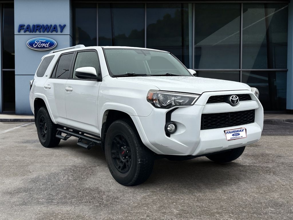 Discover dependable performance and rugged style with this 2018 Toyota 4Runner SR5 4WD, now available in Greenville, SC. Powered by a proven V6 4.0L gasoline engine, this Toyota 4Runner delivers confident towing capability and smooth highway cruising while conquering off-road trails with Toyota's legendary reliability. The SR5 trim balances comfort and capability, offering versatile cargo space and a commanding driving position for daily commutes and weekend adventures. This Toyota 4Runner comes equipped with modern technology for convenience and safety: Hands Free Bluetooth keeps your phone connected without taking your hands off the wheel, a Back-Up Camera enhances visibility and parking confidence, and integrated Navigation helps you find the best routes whether you're exploring near Greenville or headed out of town. Four-wheel drive adds traction when the road gets challenging, and the durable interior stands up to active lifestyles. You won't find a better combination of value and capability â" this 2018 Toyota 4Runner SR5 is priced to move and offers the best price for buyers seeking a well-equipped, rugged SUV in the Greenville area. Whether you're hauling gear, towing toys, or commuting in comfort, this Toyota 4Runner is ready for the job. Schedule a test drive today in Greenville, SC, and experience the dependable performance and practicality that make the Toyota 4Runner a top choice for SUV buyers.