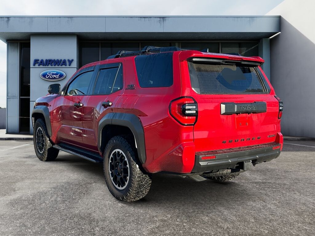 2025 Toyota 4Runner Hybrid TRD Off-Road Premium â" AWD, 2.4L 4â'Cyl Full Hybrid Electric (FHEV), 7,485 miles. Located in Greenville, SC, this rugged yet efficient Toyota 4Runner Hybrid delivers exceptional capability with low mileage and the best price in the area. This CARFAX 1â'Owner SUV combines off-road readiness with hybrid efficiency. The TRD Off-Road Premium package adds durable suspension, exclusive styling touches, and trail-focused features, while the 2.4L Full Hybrid Electric powertrain provides strong low-end torque, improved fuel economy, and smooth AWD performance for adventures near Greenville and beyond. Comfort and connectivity are covered with Apple CarPlay and Hands-Free Bluetooth for seamless smartphone integration and safer driving. Advanced safety tech includes Cross-Traffic Alert and Blind Spot Monitor to help you stay aware on busy roads and tight parking situations. This 4Runner's low miles mean years of reliable service ahead, backed by Toyota's proven engineering. With its blend of capability, efficiency, modern tech, and a clean CARFAX history, this 2025 Toyota 4Runner Hybrid TRD Off-Road Premium stands out as the smartest choice for buyers seeking value and performance. Contact us in Greenville, SC to schedule a test drive and lock in the best price today.